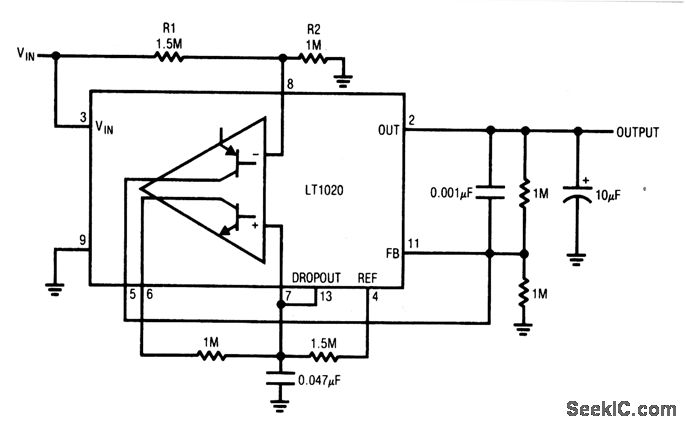 http://www.seekic.com/circuit_diagram/Power_Supply_Circuit/Regulator_with_output_shutdown_on_dropout_battery_low.html