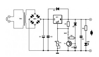 The circuit is based on the LM317, it is possible to varying the voltage between 1.25 V to 27 V depending on the voltage applied to the input (input voltage must be greater than 3 volts from the output circuit).