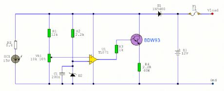 A solar battery charger that uses a shunt regulator to prevent overcharging. Circuit uses a 12V solar battery, but can be adapted for other voltages.