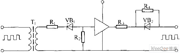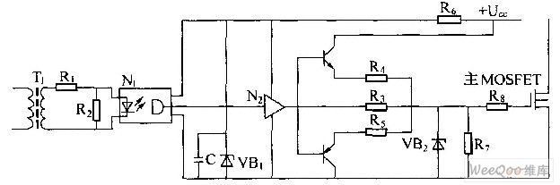 The main function of the driving circuit is to amplify the variable width pulse which is output by the pulse width controller, so the variable width pulse can be used as the driving signal of the high voltage power switching device. The driving circuit generally has the isolation effect, it usually uses the transformer coupling method to achieve the isolation between the high voltage power switching device's incentive input stage and incentive output stage, and it also exerts the reverse bias to accelerate the turn-off of the device. In the figure, the primary coil input signal of the driving transformer is the output driving signal of the control circuit.