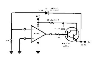 This is the other power supply regulator circuit, is different from the previous circuit, this using IC op amp quad type MC 3401 operational amplifier from Motorola. Here is also used NPN Epitaxial Silicon Darlington Transistor MJE 800.