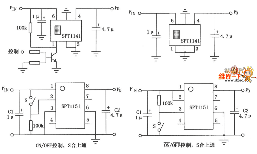 http://www.seekic.com/circuit_diagram/Power_Supply_Circuit/Switching-Regulator_Circuit/SPT1141/1151_Multifunction_switch_controller_circuit_diagram.html