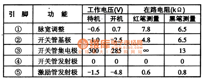 STR一D6601 integrated circuit adopts single-row pin capsulation, the function and data of its integrated circuit is shown by the chart 1.