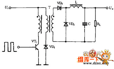 The single terminal forward switch power supply circuit is shown in the figure. This circuit is like the backward switch power supply circuit in terms, but the working condition is different. When the switch VT1 is conducting, VD2 is also conducting, at the moment, the grid is sending energy to the loading, the filter inductor L is storing energy; when the switch VT1 is blocked, the inductor L is releasing power to the loading by the freewheel diode VD3.