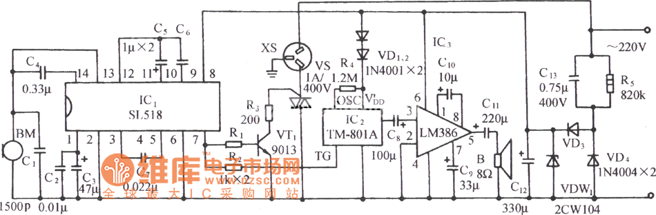 Published:2014/3/5 21:41:00 Author:lynne | Keyword: Use SL518 acoustic music socket circuit diagram, | From:SeekIC
