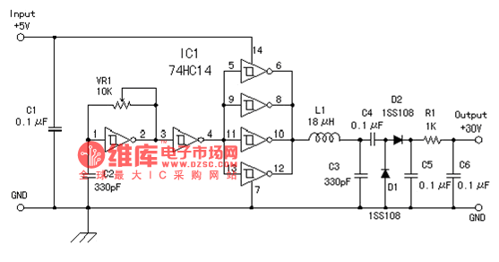 Published:2011/8/29 3:48:00 Author:TaoXi | Keyword: +5V, input, +30V, output, boost circuit | From:SeekIC