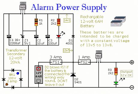 A 12 Volt power suppiled designed for Ron's Modular Burglar Alarm. However, being a popular supply voltage this circuit will have many other uses as well. (View)