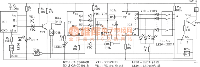 This circuit first makes seconds time base form mimute signalby the multi-stage separate frequency. After multi-stage separate frequency, mimute signalis output as binary combination classification. By the switch controlling, we can preset timing open or timing shut these two working states. This circuit has high control accuracy, and the circuit component is as shown.