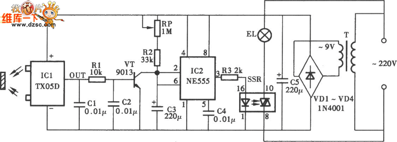 The Circuit Diagram of TX05D Infrared Remote Control Light is as shown.