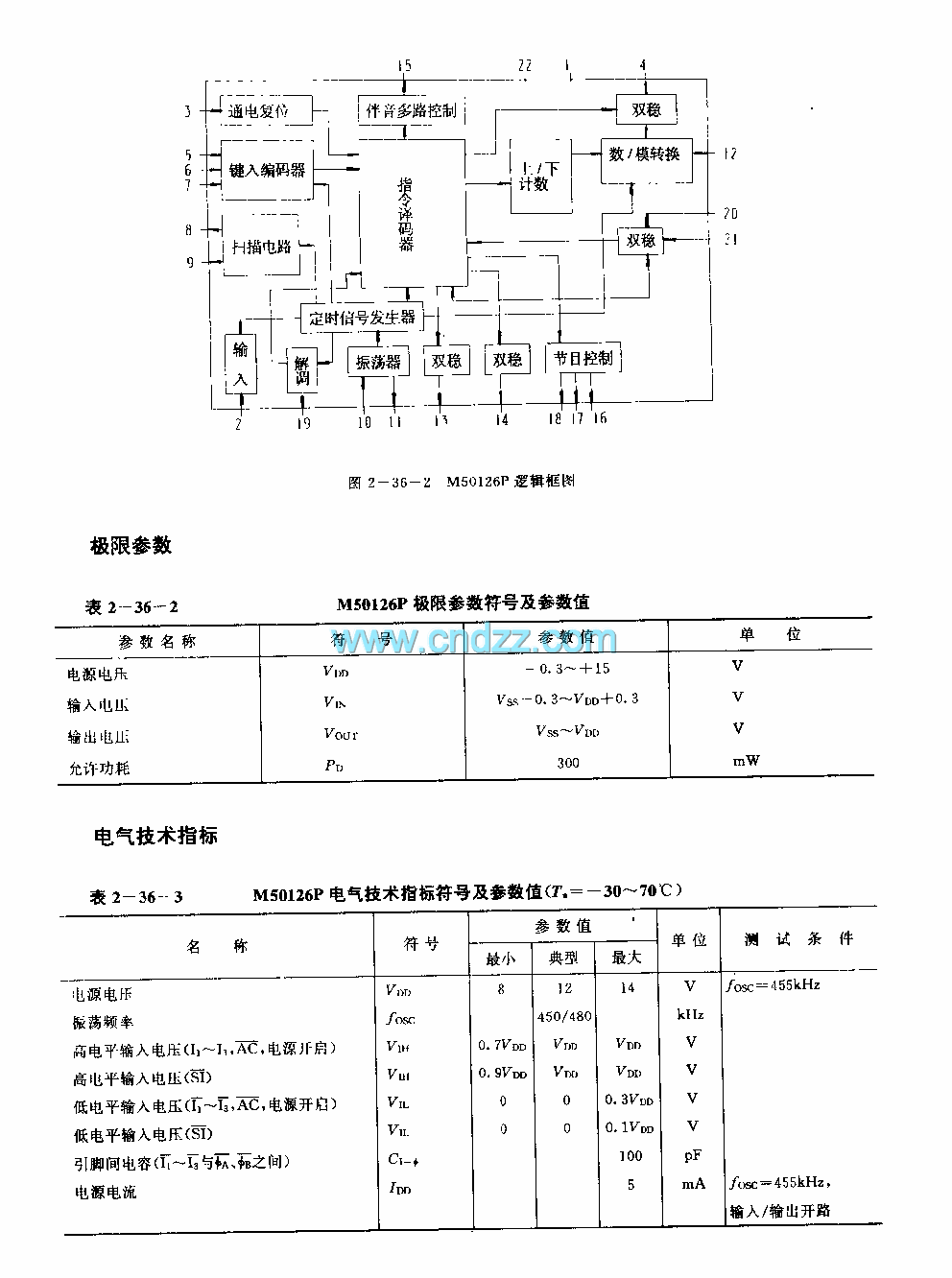 The M50126P is designed as one kind of infrared remote control receiving circuit, and it can be used in the TV set application. The internal circuit is composed of the input circuit, the scanner, the type-in encoder, the oscillator, the timing signal generator, the instruction decoder, the multi-channel audio controller, the D/A converter and the program controller.