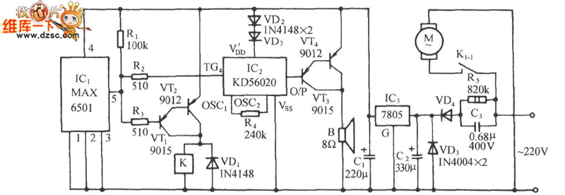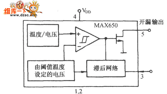 In the figure, MAX6501 is a MAX temperature switch integrated circuit which is produced by MAXIM, the USA, the temperature control range is 45~115℃.