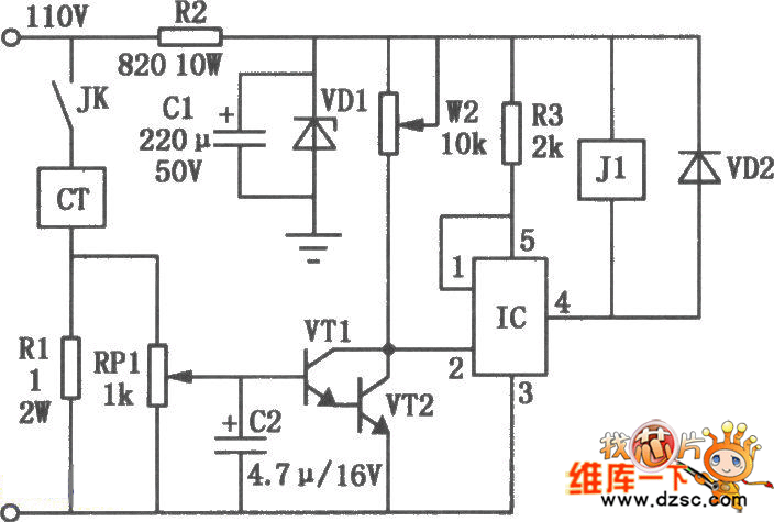 See as the circuit, the +24V is generated by stepping down the 110V power supply. When the touch spot JK of the magnetic sucker circuit is closed, the sucker is on and working, whose regulated current is 1.4A(the current of strong sucker is higher). At the moment, the sampling resistor which is serially connected in the electric sucker will have a 1.4v voltage drop, the dropped voltage is sampled by the potentiometer RP1 and imposed on the transistor VT1 input circuit, and then compound-magnified by VT1 and VT2. The multiple after being compounded by VT1 and VT2 is high.