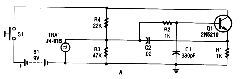A GC Electronic P/N J4-815 ultrasonic transducer is used in this 40-kHz transmitter for remote-control application.