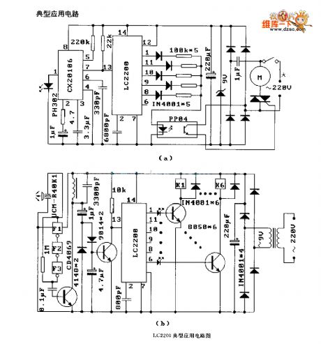 The circuit is as shown in the figure. It includes the infrared emission circuit, the infrared receiver circuit, the decoder circuit, the dimming control circuit and the birds voice circuit.etc. You can use this circuit to achieve the remote control switching and dimming of the wall lamp, droplight, the remote control distance is more than 7m, and it is easy to operate and has reliable performance.