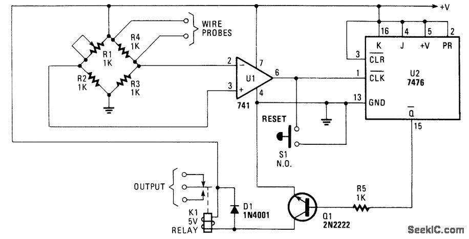 http://www.seekic.com/circuit_diagram/Sensor_Circuit/LATCHING_WATER_SENSOR.html