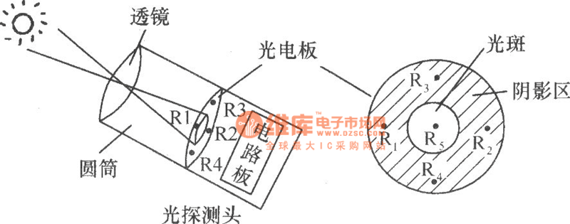 The working principle:it uses the photovoltaic solar device,and if it can not track the sun,its performance will greatly reduce. Here the device allows it to achieve full track of horizontal and vertical direction of the sun,and it will automatically reset at night.To track the sun, it must have solar probe. As shown in the picture, the solar probe of the device consists of a convex lens, five light-sensitive resistors, the control circuit board and a cylinder.