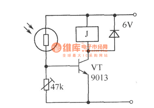 If you use the photosensitive resistoras the optical switch circuit,its sensitivity is very high.The picture shows the photorelay.When the light is low, VT does not turn on; when there is a certain intensity of light exposure, the resistance ofphotosensitive resistor will get small, and VT will get sufficient base current and get conducted, resulting in a larger collector current, and the relay will close.