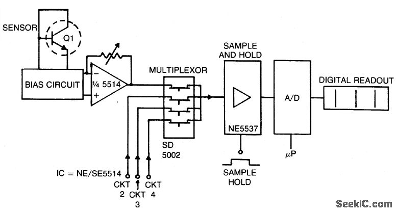 http://www.seekic.com/circuit_diagram/Sensor_Circuit/Temperature_Sensor/μP_CONTROLLED_DIGITAL_THERMOMETER.html