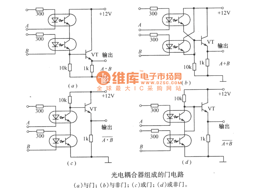 The gate circuit of photoelectric couplers(a) AND gate; (b)and NAND gate; (c)OR gate; (d) NOR gate