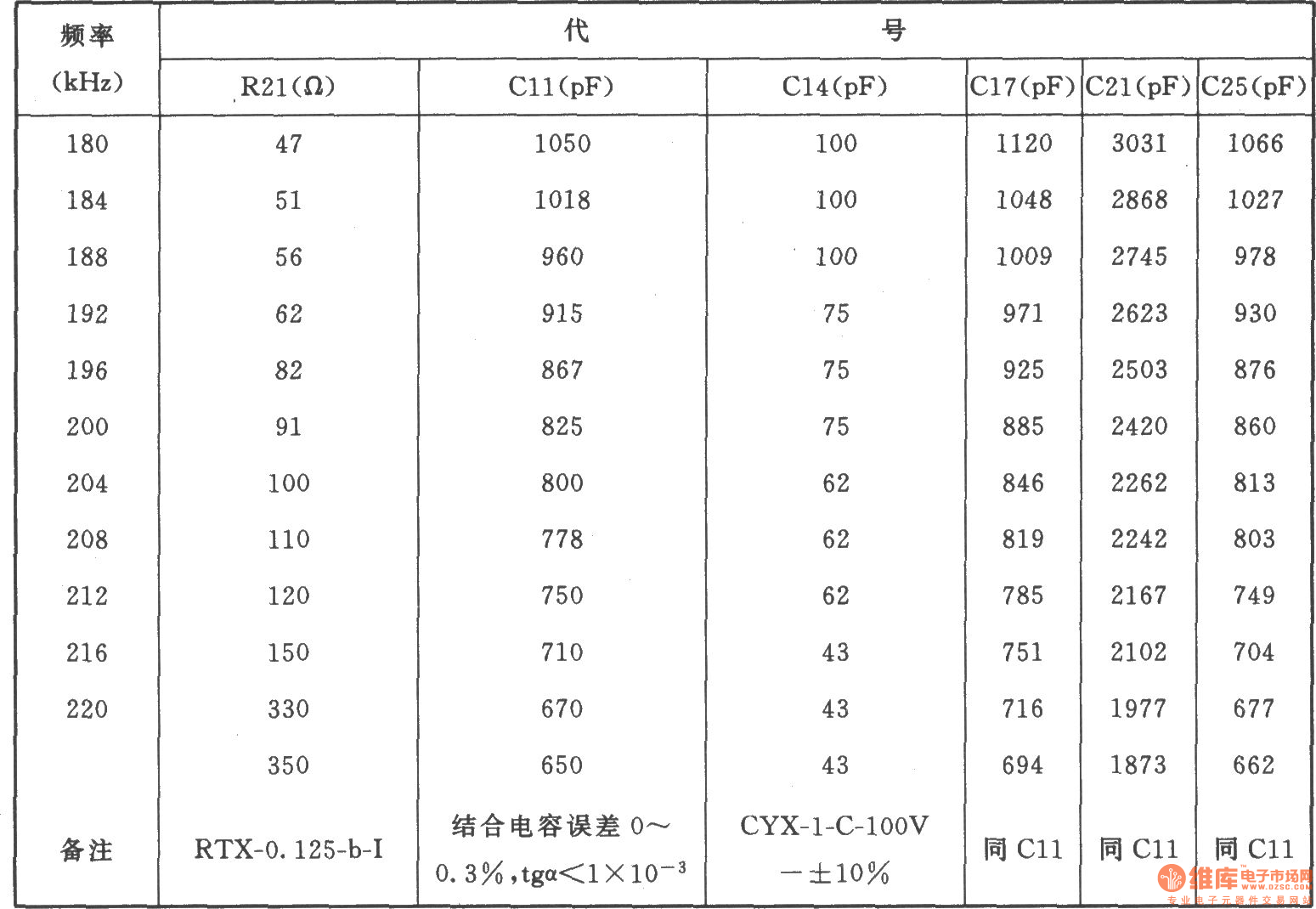 Capacitor Cl C3,C7, Cl5, Cl6、C26~C29:0.047pF,C2, Cl9, C30:0.1μF,C4:510pF, C5, C8, C9, C20, C21~C24:5μF30V,C6:2400pF, Cl0(optical using when measurement ), Cll, Cl4, Cl7, C21, C25, see the table below, Cl2:20pF, Cl3:680pF, Cl7:5500pF, Cl8, C31, C32:50μF30V, C33, C34:0.22μF.