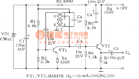 The oscillator is the services signal source for communication user . Working principle is as shown. It consists of VTl, VT2, and other related components. VTl using transformer T to couple oscillation signal, VT2 is the common collector buffer amplifier circuit, the emitter output. T transformer with 1-4 winding and the capacitor C4 form a selecting frequency network. In order to prevent magnetic saturation of T, T is connected to the collector of VTl by the 1-2 tap, 5-6 of T is the feedback loop. Detection: The DC-bit of pin-to-ground (reference value) is as shown in the table.