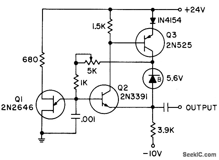 Uses bootstrap charging circuit, with constant voltage maintained across charging resistor by zener diode and emitter-follower amplifier Q3, so capacitor charging current is constant over complete cycle.- Transistor Manual, Seventh Edition, General Electric Co., 1964, p 319.