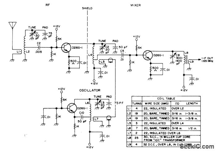 Developed for use as converter with any communication receiver having 1.65-MHz IF. Article covers construction and tune-up. Use of GE microtransistors permits miniaturization.-B. Hoisington, A Real Hot Front End for Six, 73 Magazine, Nov. 1974, p 88-90 and 92-94.