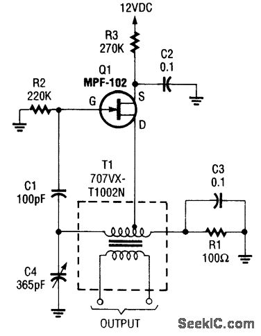 A Hartley oscillator usmg an MPF102 covers the band from 530 to 1600 kHz.T1 is a Toko P/N T1-707VXT1002N 217μhy transformer.