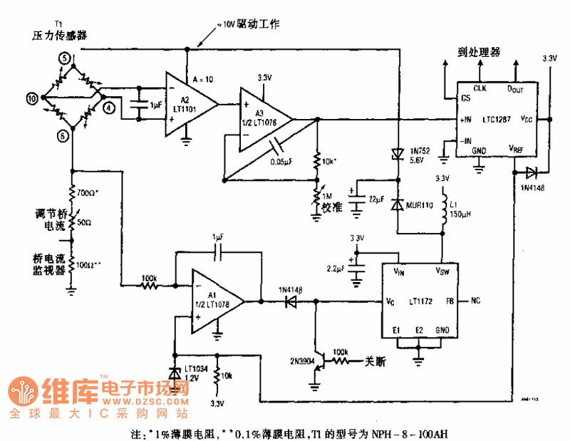 *1% thin film resistor, **0.1%thin film resistor, the type of T1 is NPH-8-100AH.