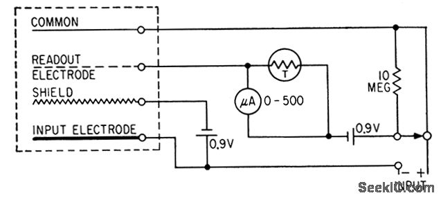 Use of solion diode eliminates need for sensitive electrometer. Integral may be read continuously while integration is taking place, without affecting its value. Varistor is used in parallel with meter to compensate for temperature changes.-R. N. Lane and D. B. Cameron, Current Integration with Solion Liquid Diodes, Electronics, 32:9, p 53-55.