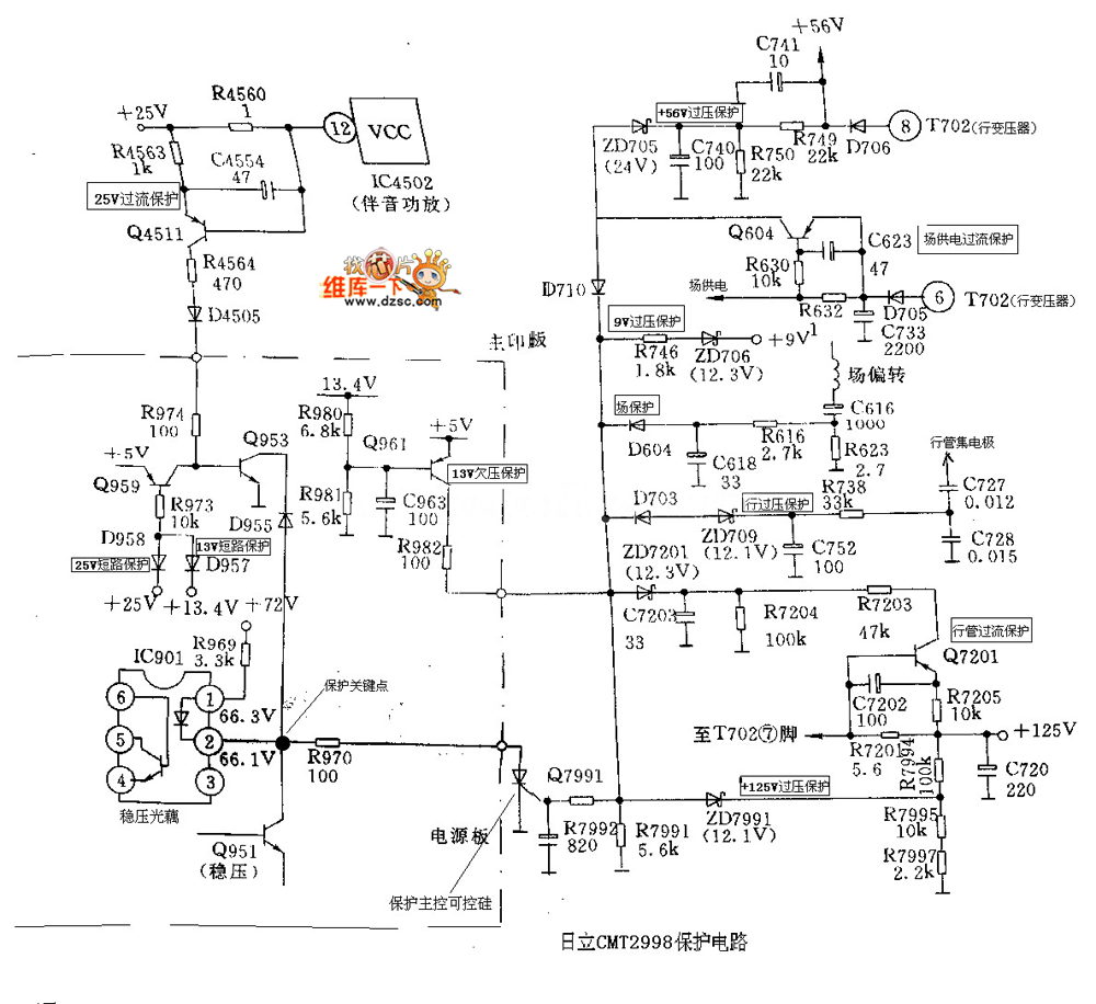 The (Hitachi) CMT2998 protection circuit is as shown in the figure:
