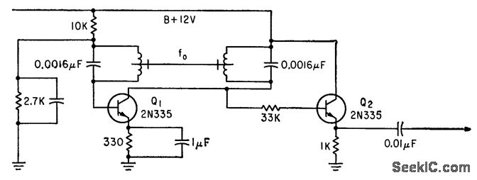 Oscillator Q1 can be adjusted to within 0.1 cps of desired frequency by adjusting length and center thickness of rod made from modified Elinvar constant-modulus material positioned between coils. Emitter-follower Q2 minimizes pulling by variable load. -T. A O. Gross, New Magnetic Rods Simplify Circuits, Electronics, 35:28, p 62-66.