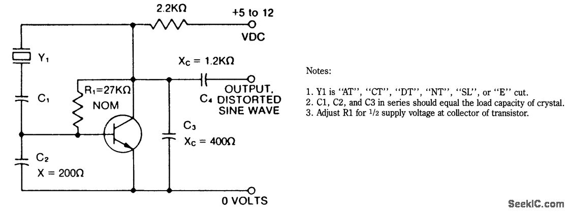 C1 capacitor in series with the crystal may be used to adjust the output frequency of the oscillator. The value can range between 20 pF and 0.01 μF, or it can be a trimmer capacitor.