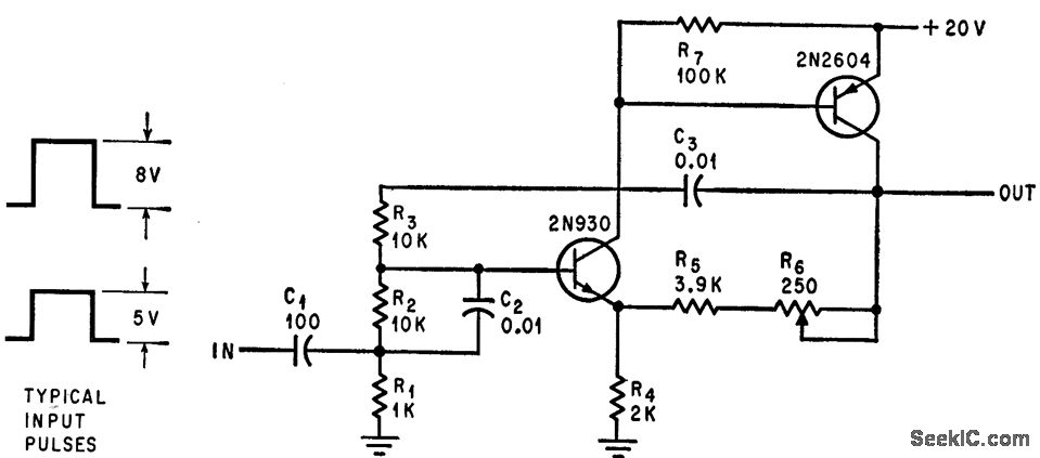 Circuit is pulsed on only when required ,as in tone generators where output is needed only occasionally and power must be conserved. Uses Wien-bridge oscillator have rang of 100 cps to 100 kc, which operates only when gating pulse is applied to input. Amplitude of output oscillations varies with amplitude of gating pulsed.-R.C. Lavigne and L. L. Kleinberg, Pulsed Oscillator Conserves Power, Electronics, 39:17, p 98-99.