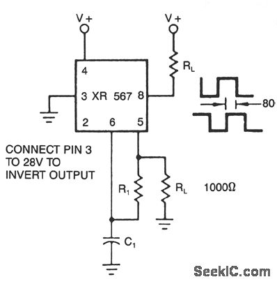The XR-567 functions as a precision oscillator with two separate square-wave outputs at pins 5 and 8, that are at nearly quadrature phase with each othen. Because of the internal biasing arrangement, the actual phase shift between the two outputs is typically 80%.