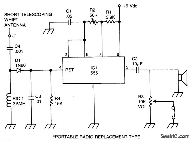A sidetone oscillator is a special audio oscillator that is turned on and off with the transmitter. The oscillator is rf-driven and bat-tery operated. It uses a 555 IC timer as an astable multivibrator. Keying is accomplished by applying a positive dc potential, developed from the rf signal, to the reset terminal of the 555.