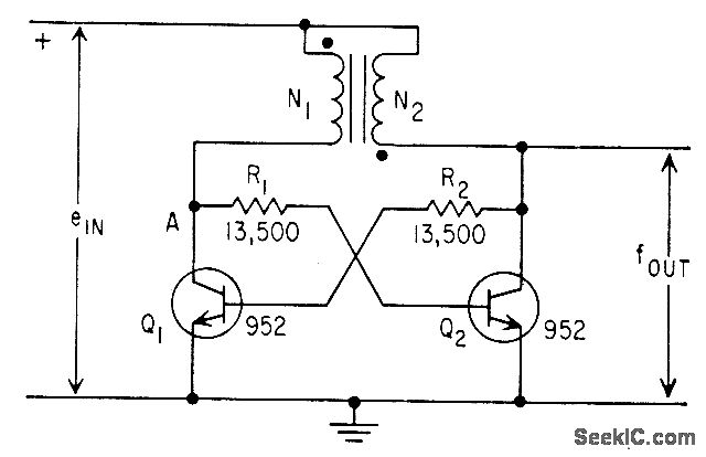 Timebase integration of a variable is performed by counting cycles of saturable-reactor oscillator whose frequency is proportional to the variable. linearity is within 1% of full scale.-L. W. Langley, Saturable-Core Oscillator Integrates Gas-Flow Data, Electronics, 32:4, p 42-43.