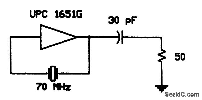 This simple fundamental oscillator uses a μPC1651G IC and two components. The crystal is funda-mental.
