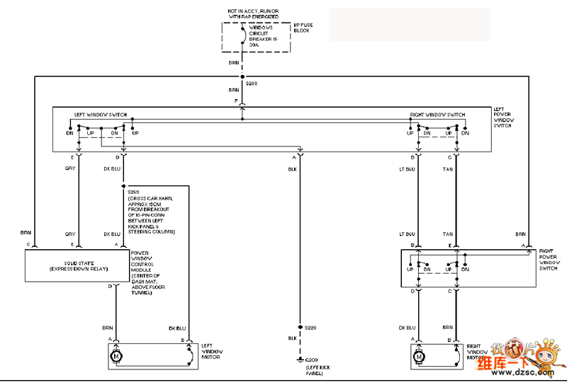 Here is the schematic diagram of the Pontiac motor windowcircuit: