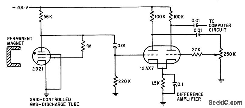 Signals arise from fluctuations in dense layer of positive ions near cathode of 2D21 grid-controlled gas-discharge tube. Used with computers to simulate random action, such as effect of wind gusts on controls of airplane.-N. D, Diamantides and C. E. McCray, Generating Random Forcing Functions for Control System Simulation, Electronics, 34:33, p 60-63.