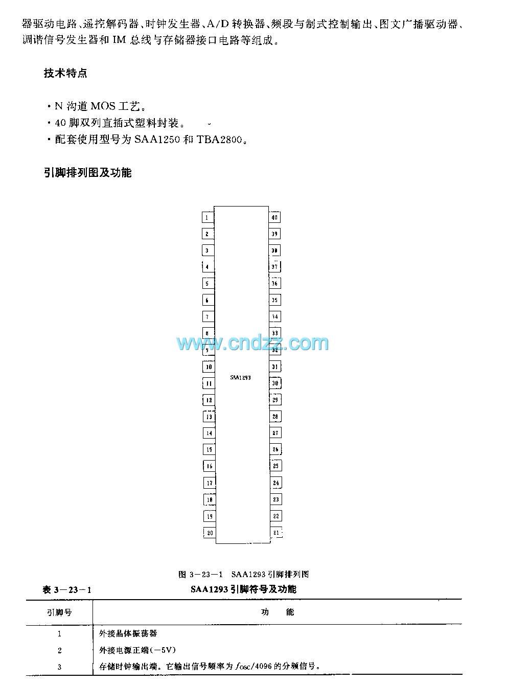 Technology characteristicN-channel MOS technics40-pin dual-in-line plastic packageSupporting types are SAA1250 and TBA2800