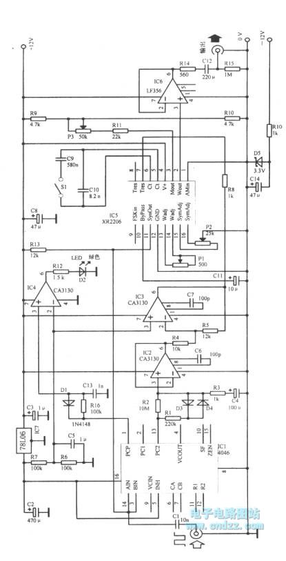 Published:2014/5/4 19:48:00 Author:lynne | Keyword: Sinusoidal phase-locked loop oscillator, XR2206, CA3130, 4064, LF356, 78L06 | From:SeekIC