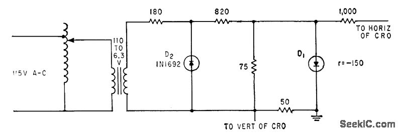 Curve-tracing circuit provides cro traces as aid in determining proper bias and circuit impedances for operating tunnel diode as switch, amplifier, or oscillator.-R. P. Murray, Biasing Methods for Tunnel Diodes, Electronics, 33:23, p 82-83.