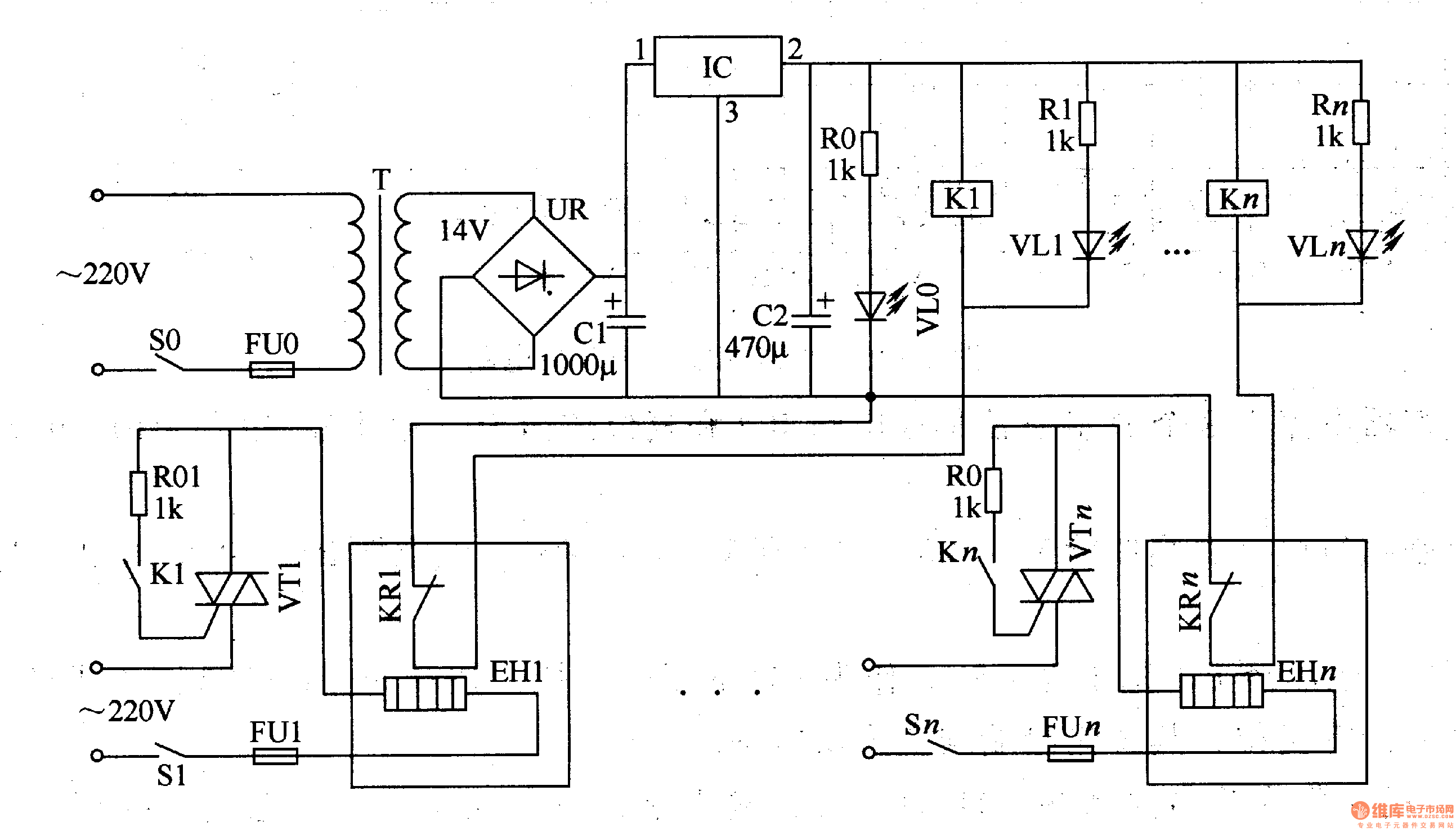 In industrial manufacturing and scientific researches, an electric heating box is always coupled with a temperature controller, this often happens in the spots where there are many electric heating boxes. Here is to introduce the temperature central controller which can constantly control the temperature of many electric heating boxes(or electric oven and electric cooker).The working principle of the circuitThe temperature central controller consists of the power supply circuit and the constant temperature control circuit, see as figure 8-127.