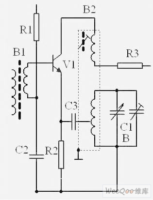 V1 is a frequency converter tube with oscillation and frequency mixing functions. The local oscillator circuit forms a transfomer feedback oscillator composed by oscillation transformer B2 and adjustable capacitor C1b, the oscillator frequency is mainly decided by L4 and C1b, the local oscillator signal is connected to V1 base-emitter though C2 and C3, the self-excited oscillation signal is coupled to oscillation loop by feedback coil and then sent back to V1 base-emitter though C3 and C2, it is amplified circularly and forms oscilltion. The input tuning signal and local oscillation signal are added to the triode simultaneously, then the sum frequency, multiplication frequency and differential frequency of two frequencies will be produced at the emitter of the triode using the non-linear characteristic of the triode.