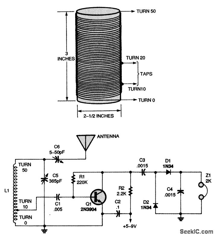 Here is a receiver that contains an RF amplifier. The desired radio-frequency signal can be selected by tuning C5.