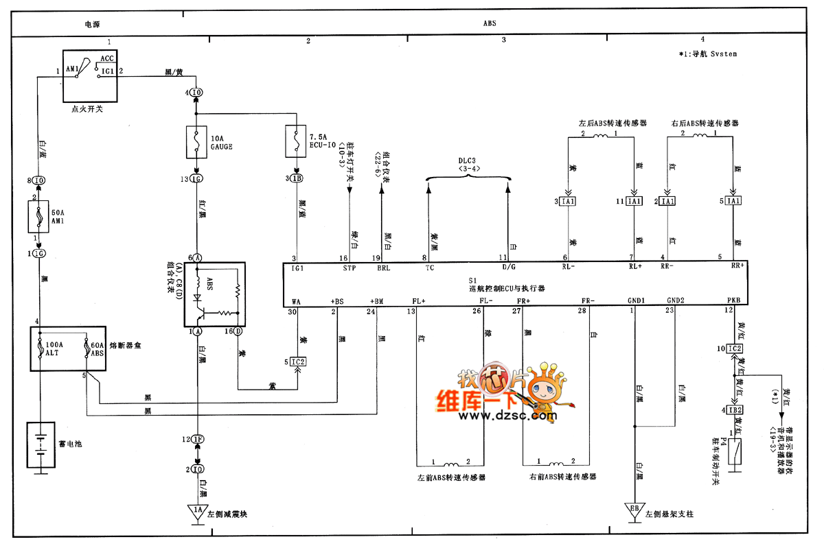 Tianjin VIOS anti-lock braking system(ABS) circuit diagram as shown: