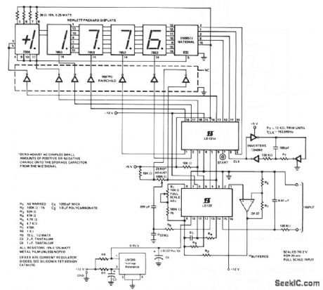 . 1-μV resolution.. Overrange blinking. 0-19.999 mV input voltages. Zero adjust-to-null offset introduced by PC board leakage and the comparator. (View)
