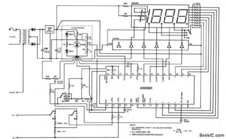This DVM circuit uses a National ADD3501 DVM chip and an LM336 reference IC to create a simple DVM with relatively few components. When making a single range panel meter, the range switching components can be left out, as required. (View)