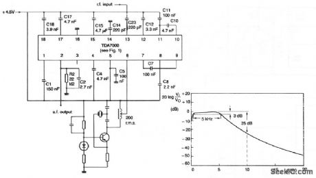 To ensure adequate itiput sensitivity,a preamplifier,IC1,IS provided,which has an amplification of 11(21 dB).Because this stage IS intended for speech only, its bandwidth is limited to 160 Hz to 10 kHz.Divider R2/R3 at the input of the op amp is decoupled by C3.
